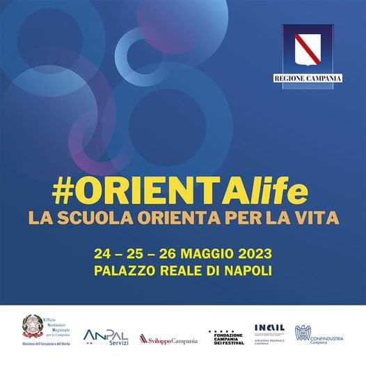 Nei giorni 24-25-26 maggio 2023, si svolgerà la manifestazione finale per condividere, socializzare e diffondere le buone prassi emerse nel progetto “ORIENTAlife – la scuola orienta per la vita”, organizzata dall’Assessorato alla Scuola della Regione Campania, dall’Ufficio Scolastico Regionale per la Campania, da Anpal Servizi, da Confindustria Campania e da INAIL Campania. L’evento coinvolgerà più di 50 istituti scolastici, per un totale di circa 1800 ragazzi, nell incontro che si terrà presso Palazzo Reale di Napoli.
